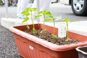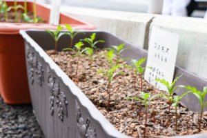 デイケアでは5月から園芸療法を開始していますが、余暇活動のひとつとして「緑化活動」を取り入れることになりました。現在、最初に植えた「ひまわり」と「コスモス」の種が成長し、かわいい芽が出ています。
