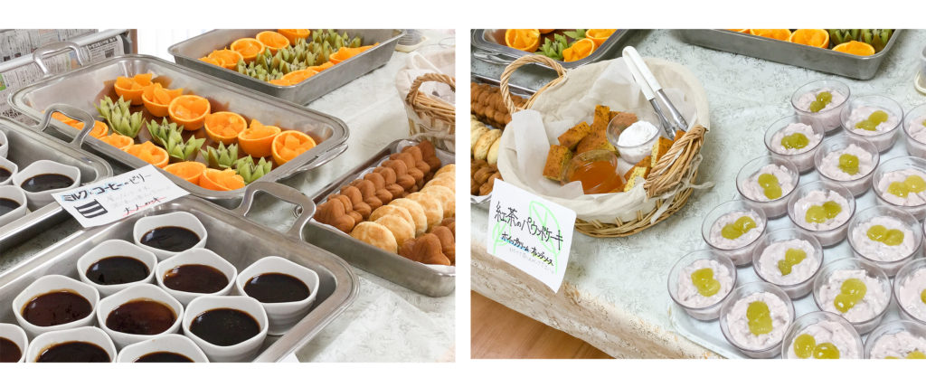 栄養士が中心となって作った「今月のおやつ」5品がテーブルに並びました。