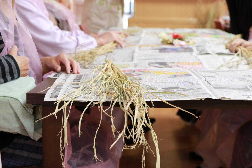 患者さんもスタッフもテーブルに置かれた藁を見て「立派だね〜!」と触って楽しまれていました。