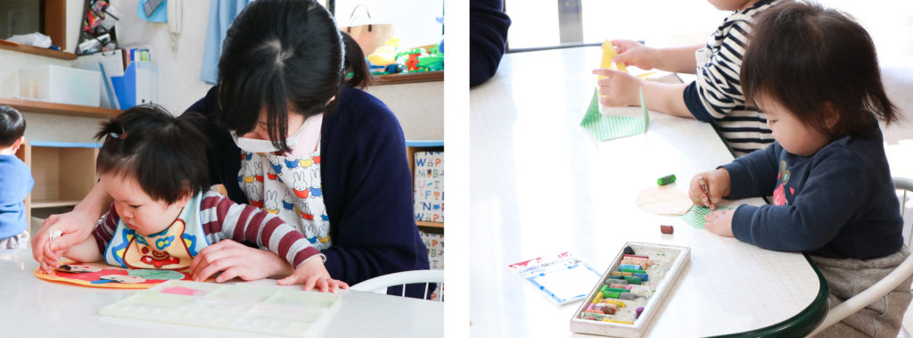 保育園や幼稚園のように大きな作品づくりはできませんが、成長を感じられる作品づくりを提供できるよう心がけていきます。
