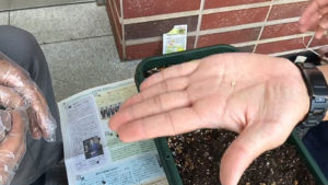 現在、デイケアの入り口で育てているのは「アスター」「千日紅」「ゴーヤ」「マクワウリ」「バジル」「きゅうり」「いちご」「スイカ」の8種類です。